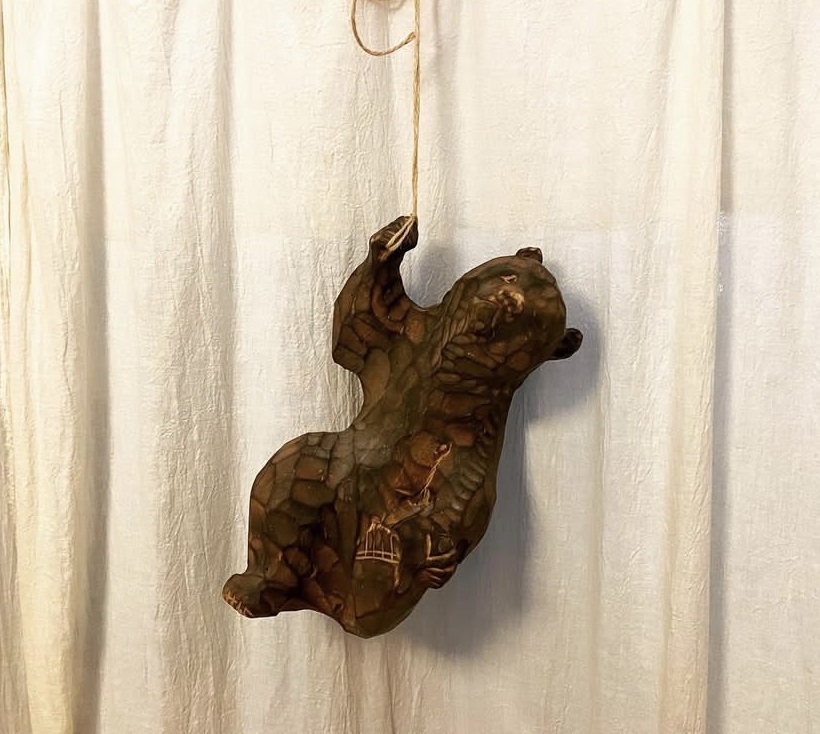 アイアンウッドという木を彫った熊です。鉄木と言われる様に大変重く硬い木で作られていて、顔がツボです。サイズも大きく、ドアストッパーになる?!というくらいの重さです。ぜひブースでご覧ください。