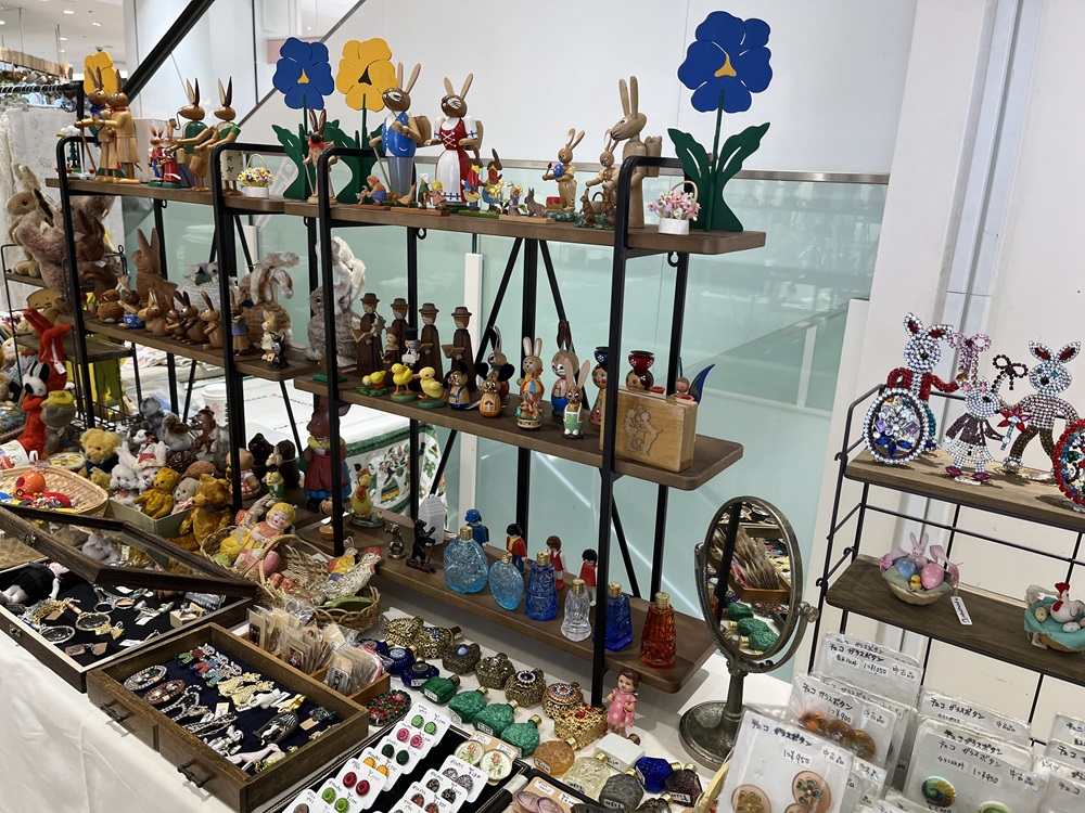 やっぱりメインは小さくて可愛いものです。イースターのうさぎ、フィギュリン、ぬいぐるみ、人形に紙もの、絵本、アクセサリー、ガラスボタン、香水瓶、布、ピンバッジ 、キーホルダー、スカーフなど、沢山の物をお披露目します。