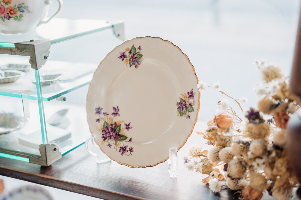 そのためスミレ色はお店のテーマカラーでもあり、スミレ色のヴィンテージパーツや、スミレが描かれたカップや紙ものなどつい集めてしまいます。