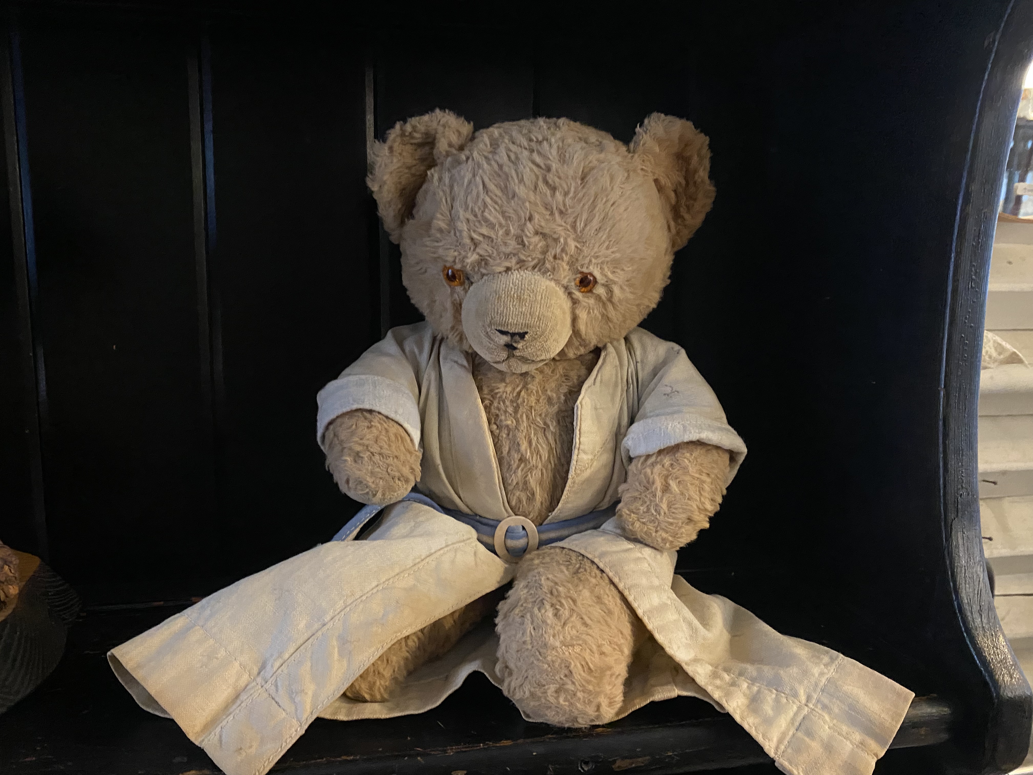 まるで昔のプロレスラーのガウンを着ているように見えてつい買ってしまったのが始まりです。綺麗で可愛い子にはときめかず、子供達が抱っこして毛が抜けて、くたびれて哀愁を感じる子ばかりにひかれてきました。ボロボロであればあるほど愛着がわきます。