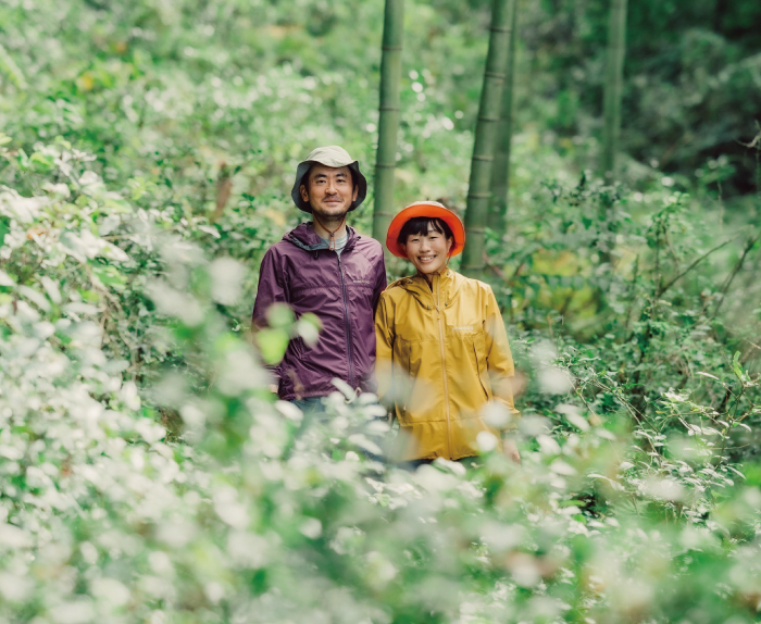 茶樹や土地本来の力を、負荷をかけず自然に引き出そうとする栽培姿勢からもうかがえるように、世羅の茶畑に寄り添う西夫妻。