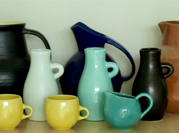 地産地消という考え方は、日本だけでなく世界各国に根付いています。フィンランドのKupittaan savi 製陶所は、国産の赤土を原料にして煉瓦や食器を生産しました。海外輸出を行っていたアラビア製陶所とは異なり、同社は国内の消費者に向けて生産を行いました。その形や色合いは素朴ながら味わいがあり、またオブジェクトのような存在感ももっています。Kupittaan savi 製陶所の作品には大胆な絵付けが施されたものもありますが、当店では素材のもつ美しさが感じられるものを選んでいます。