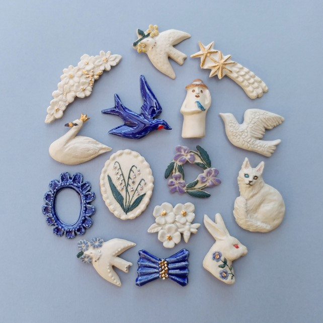 広島蔦屋書店では春のブローチフェアを開催します。丁寧に作られた春らしいブローチのひとつひとつは、見るほどに愛おしく素敵です。小さなお気に入りは春の装いを彩り、心を朗らかにしてくれることでしょう。今回はブローチを入れるお皿や小箱、アクセサリーも一緒に並びます。ぜひこの機会にご覧ください。