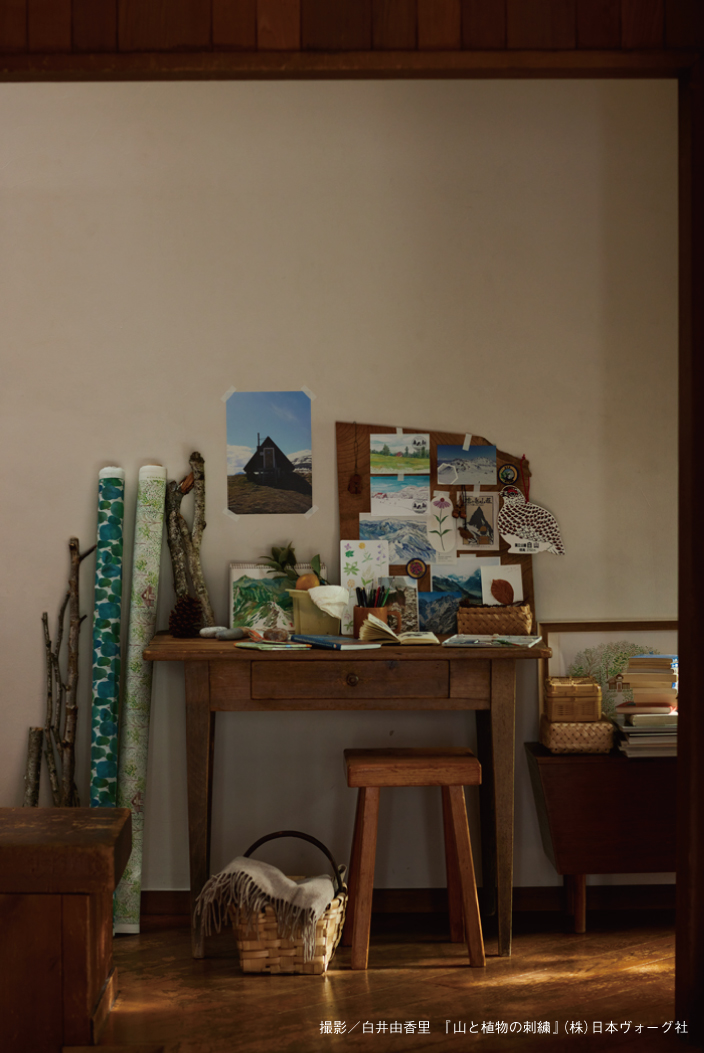 フリーランスデザイナーの真田緑さん。4月に描き下ろしの刺繍図案を収録した『山と植物の刺繍』(日本ヴォーグ社)を出版されました。毎日の暮らしの中でも自然を感じることができるようにとの真田さんの思いが込められています。
