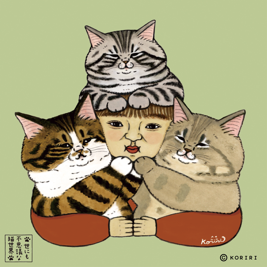 猫が人間のように暮らす世界を描いた『世にも不思議な猫世界』シリーズは、LINEスタンプから始まり、様々なグッズやイラスト作品集(辰巳出版)、絵本『ねこのようしょくやさん』『ねこのラーメンやさん』『ねこのすしやさん』『ねこおケーキやさん』(金の星社)など幅広く展開している。