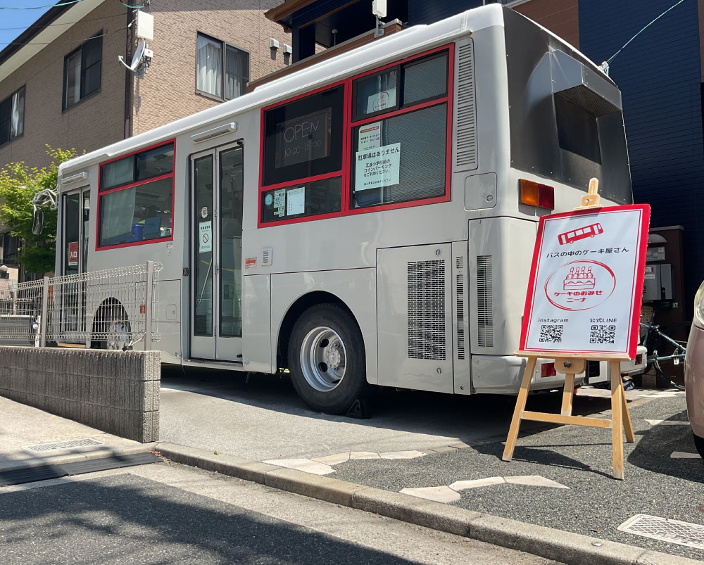 住宅街の中にある、バスを改装した小さなケーキ屋「ケーキのおみせニーナ」。かわいいバスの中には人気のシュークリームや焼菓子がずらり。季節の素材を使ったケーキや焼菓子をひとつひとつ丁寧に手作りしています。今日も小さなバスの中でお待ちしております。