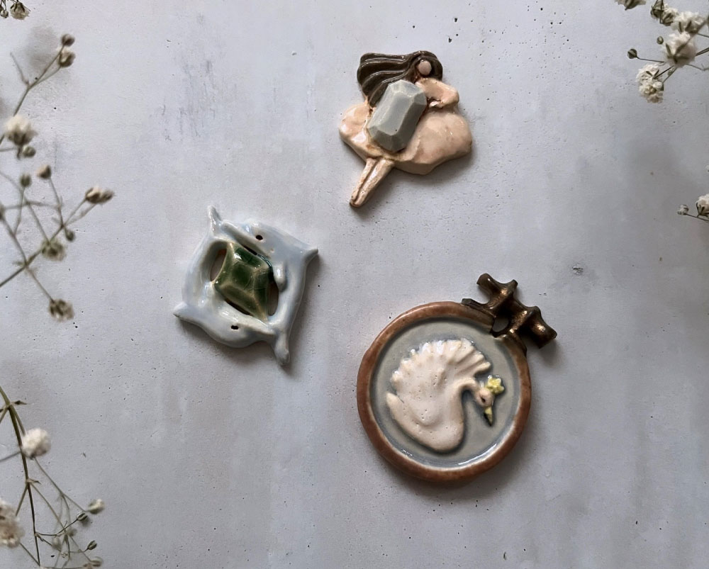 「旅人の冒険」をテーマに物語を纏う器や陶器ブローチ、アート作品などを制作しています。旅人が訪れた''雲の王国"や"人魚の入江"、また道中出会った人や見た物などを書き留め、職人がその旅人の思い出を形にしていきます。ここにしかない小さな作品に込められた彼らの物語の続きを共に紡いでいただけたら幸いです。