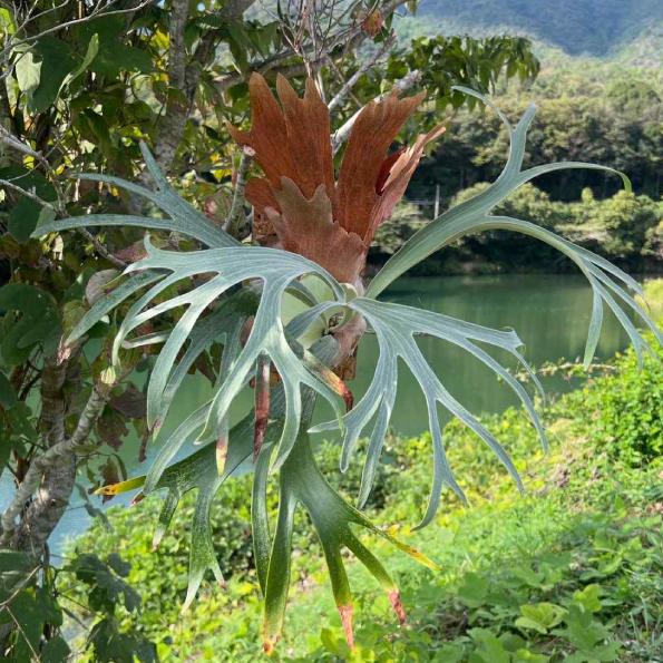 ビカクシダは東南アジア・オーストラリア・南米・アフリカに自生するシダ植物です。花は咲かないのですが、2種類の葉が展開して木に着生する不思議でかっこいい植物です!