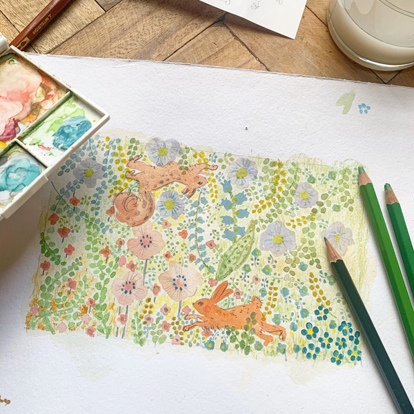大学時代に油絵を専攻していた佐々木さん。この度のフェアでは、佐々木さんのイラストが描かれたスカーフやポストカードをご紹介しています。