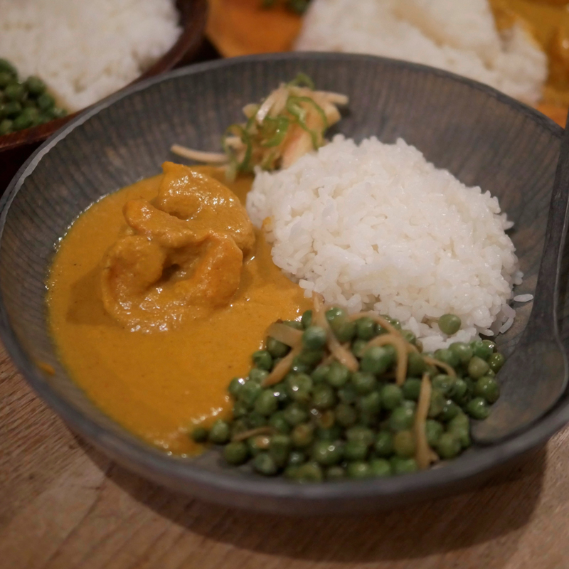 エビの旨味がたっぷり詰まったクリーミーなカレー「プロウンコルマ」を作ります。「コルマ」とは、カシューナッツやヨーグルト、バターなどを使ったコク深いカレーのこと。この濃厚なメインディッシュに合わせる、2品の副菜は、グリーンピースのサブジ(炒め煮)と 生姜とレモンの薬味です。「こってりクリーミー(エビカレー)」「さっぱり、甘く(グリーンピースサブジ)」「アクセント(薬味)」**という3品が揃うからこそ生まれる、組み合わせの美味しさを体験していただきたいと思います。
