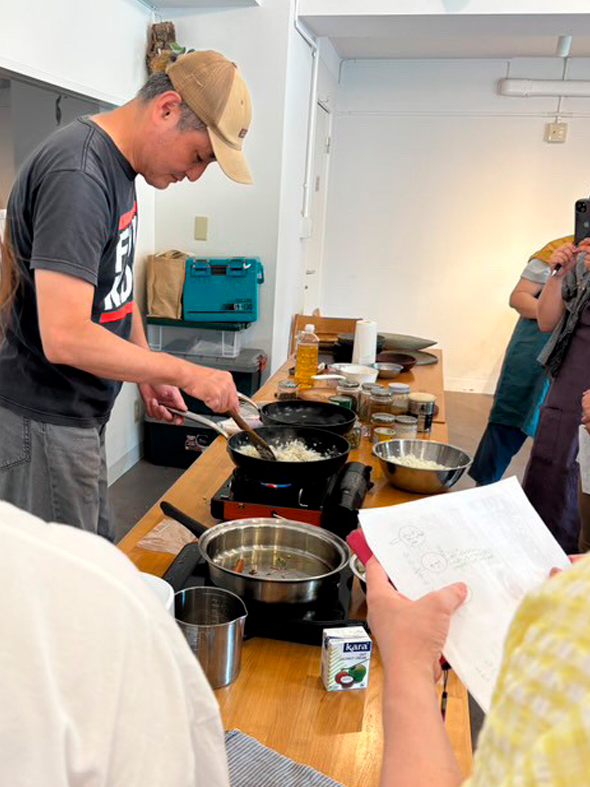 木工作家のサイトウマサアキです。ワークショップ「カレーを作って木の器で食べる会」を始めて、かれこれ12年。きっかけは「木の器を、使ってみてほしい」。心を込めて作った木の器たちを展示会で眺めてもらうだけでなく、「実際に日々の生活の中で使ってみて、その良さを体感してほしい」という強い想いから、「カレーを作って木の器で食べる会」がスタートしました。日本の家庭で味噌汁や肉じゃがを作るような感覚で、気軽に楽しめる「家庭料理としてのスパイス料理」です。「これなら家でも作れそう!」「しかも美味しい!」と感じてもらえるような、手軽で本格的なレシピを厳選し、紹介しています。