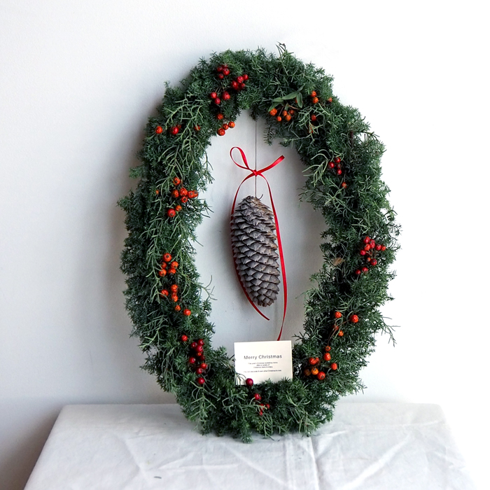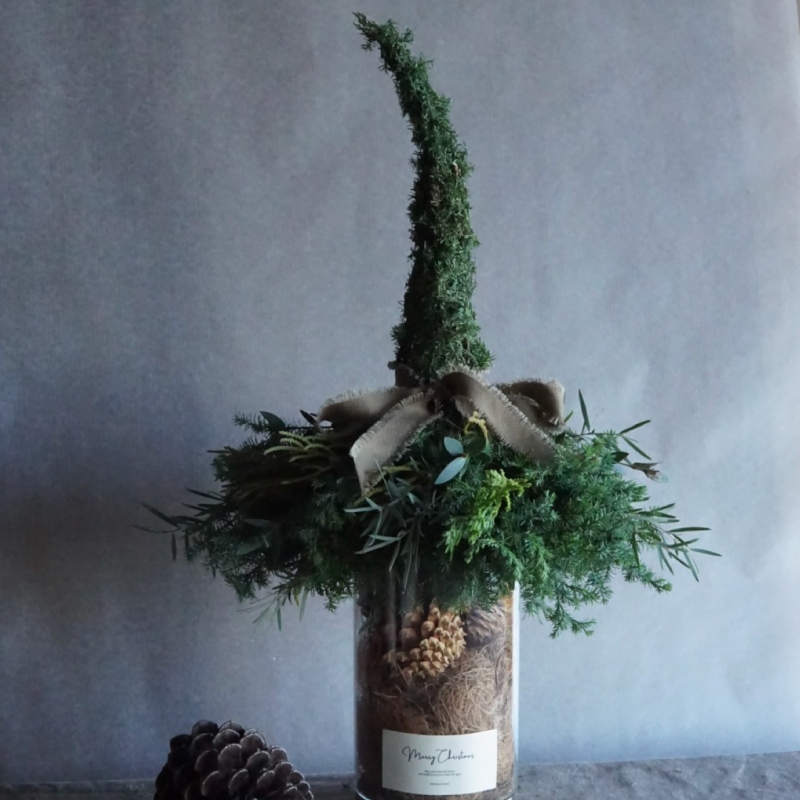 noreriさんの可愛らしく暖かなツリーやリースで素敵なクリスマスをお過ごしください。フロアのとんがり帽子のようなツリーも間近でご覧くださいね。