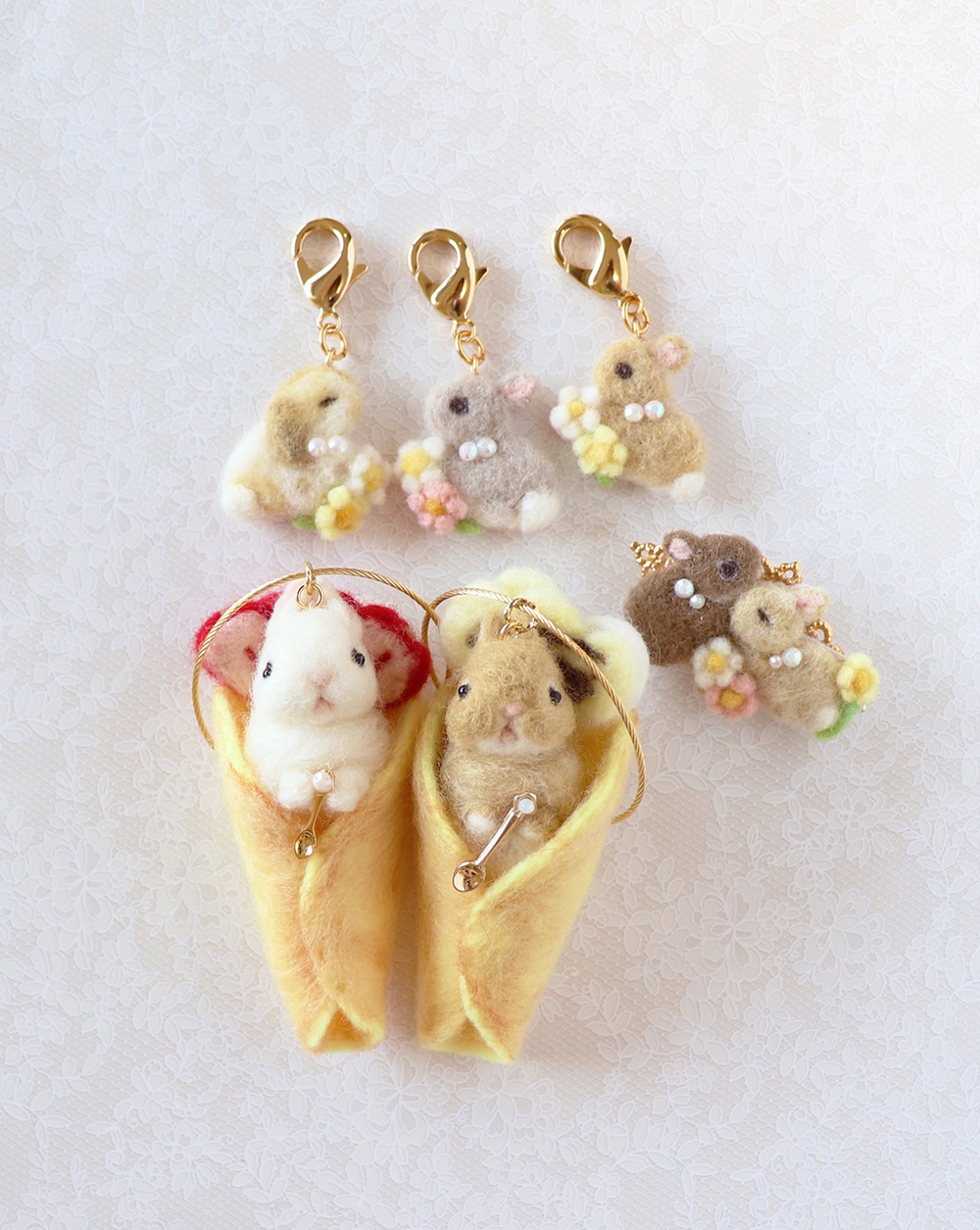 「 小さな羊毛うさぎさんとお花のブローチ」作りワークショップ
