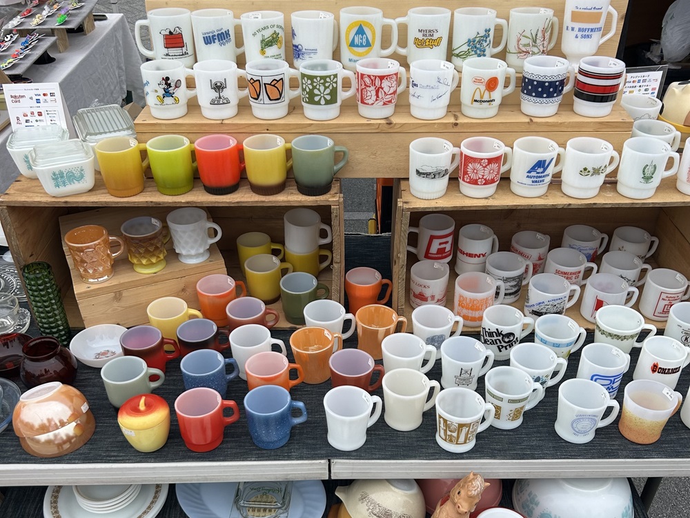 佐伯区美の里にあるアメリカンヴィンテージ雑貨のお店、雑貨屋ポッポです。アメリカで直接買い付けた、とっておきのアイテムがぎゅっと並ぶわくわくなお店。人気のFire-kingのマグカップやへんてこでかわいいぬいぐるみなどをたくさんお持ちします。ぜひ会場で手に取ってお気に入りを見つけてください。