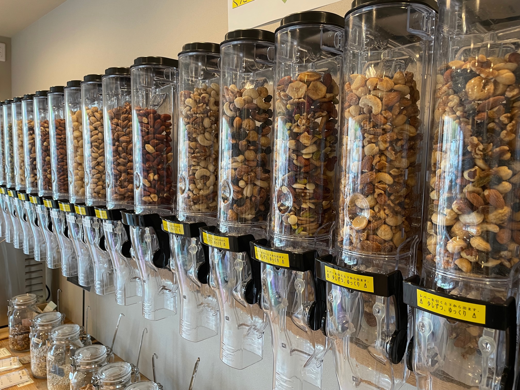 化学合成添加物を極力使用していない安心安全な商品を欲しい量だけお買い物ができる量り売りのお店です。主な取り扱い商品は、ナッツやドラフルーツ、チョコレートなどのお菓子、各種調味料、洗剤などです。プラを使わない繰り返し使える雑貨もあります。商品は、個包装していないので、できるだけ持ち込み容器をお願いしております。ゴミを減らしながら、人にも環境にも優しいお買い物をはじめませんか?