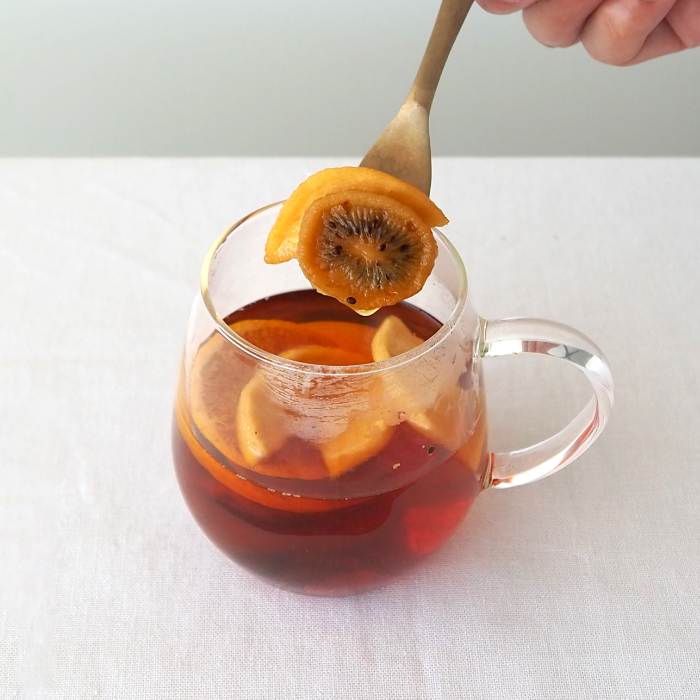 砂糖、香料、着色料を使用せずに仕上げた、シンプルな味わいのフルーツティー。国産のドライフルーツに、それぞれ相性の良い紅茶を組み合わせております。味はミントやルイボスなど全6種類で、アイスでもホットでもお楽しみいただけます。夏の出来事を思い出しながら、疲れを癒すゆったりとした時間をお供にいかがですか。