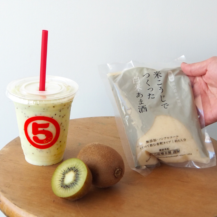 岡山県の名刀味噌本舗の米こうじを使用して作られた甘酒で加糖したキウイジュースです。キウイの酸味とスッキリさはそのままに、こうじと混ざることで、ヨーグルトの様な風味になり、お子様から大人まで幅広く人気のジュースです。飲む点滴と呼ばれる甘酒を使ったドリンク、ぜひお試しください。
