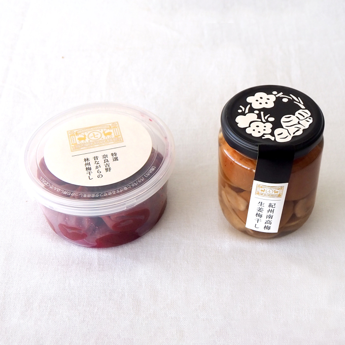 奈良に残る希少な梅の品種「林州」を使った梅干し。中粒で果皮がやわらかい林州を丁寧に手でもぎ、塩と国産の赤シソだけで漬け込んだ向かいながらの味わいです。