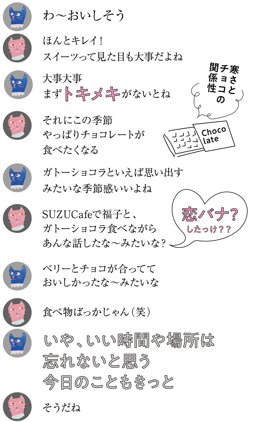 このルシャポはね、お得なんだよ。なぜかっていうと、ホワイトチョコとチョコレート両方味わえて、もちろんイチゴもたっぷり。ホワイトチョコクリームはコクがあってイチゴに合うし、トッピングの生チョコがうれしいよね。どれにするか迷ったら一度食べてみてね!