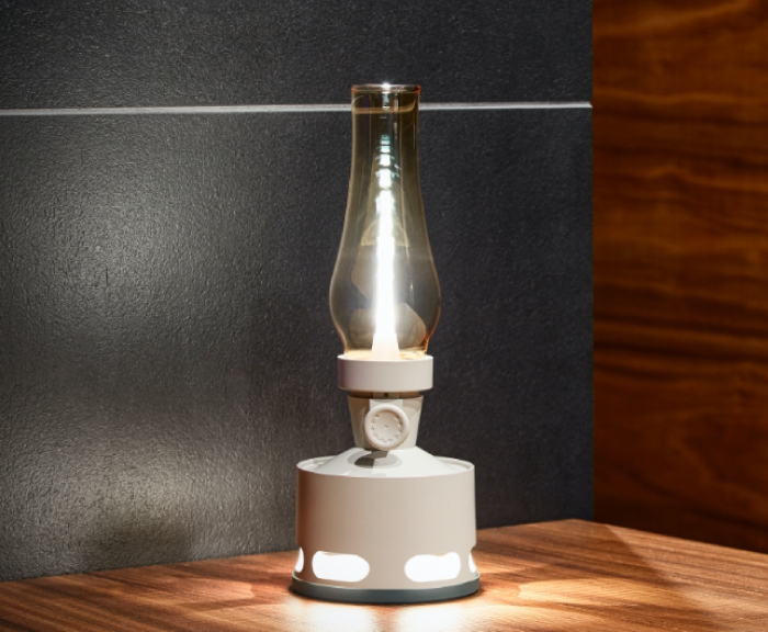 古典的なオイルランプらしい魅力はそのままに、芸術的に昇華。本体下部のデザインがつくりあげる6枚の連の花びらの形をした光が、特にユニークです。