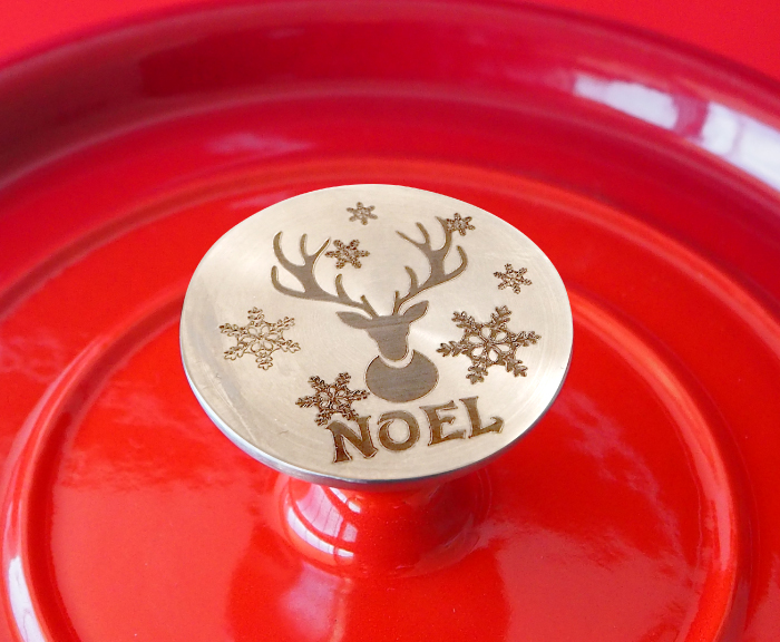 コトコト煮込むだけで、野菜の甘みやうまみ成分を引き出してくれます。さらに具材が煮崩れしにくく出来栄えもアップ。テーブルに鍋ごとサーブして温かいままシェアするのも素敵です。そんなお鍋の蓋の「ノブ」にお名前・ワンポイントイラスト・メッセージをデザインプラスします。クリスマスの贈り物やご自分のごほうびにオリジナル鍋はいかがでしょうか?