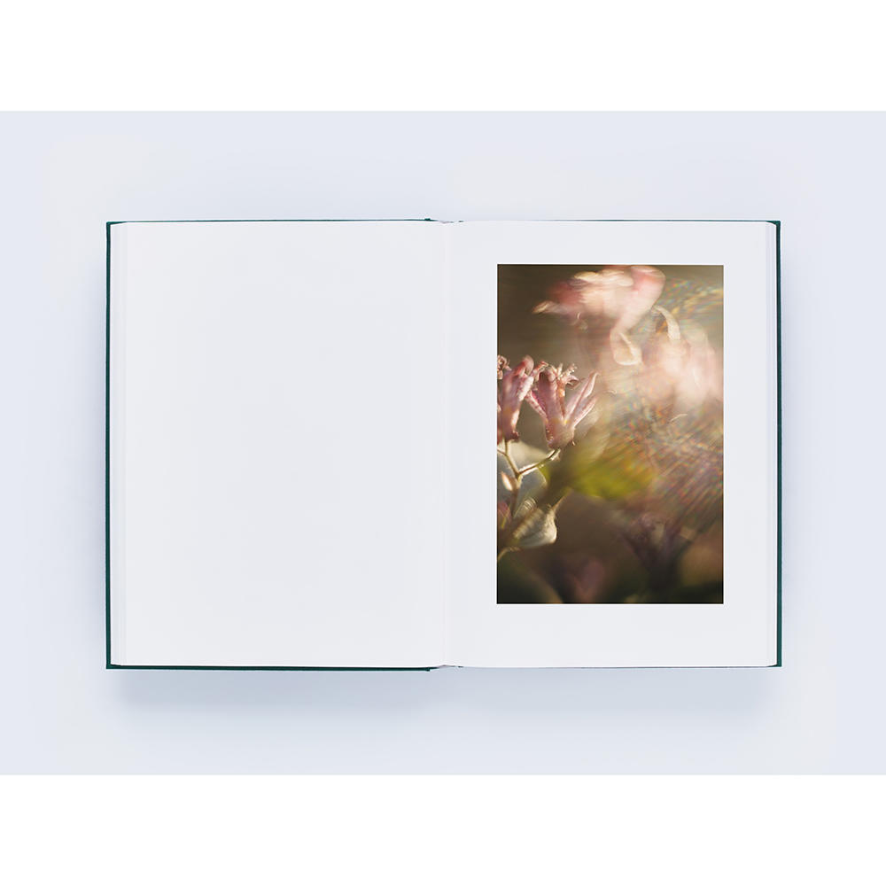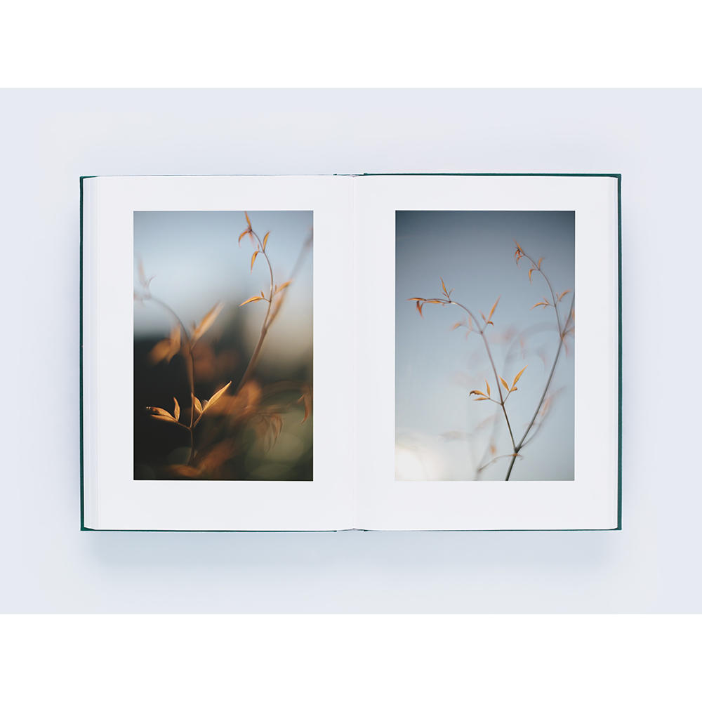 この作品集のタイトルでもある“LUMIÈRE”は「光」を意味している。太陽が生み出す光は宇宙空間を旅して地球上のあらゆる場所へと降り注ぎ、命を繋げる源となる。しかし、その光が地上へ到達する間際、風が悪戯に葉や枝を揺らし、ほんの一瞬の出来事のように届くものと届かないものに岐れる。花々や虫の視点に近づくために態勢を低くし、身を屈めながらファインダーを覗くと、木漏れ日の下では必死に光を求め踊る生命体が存在した。