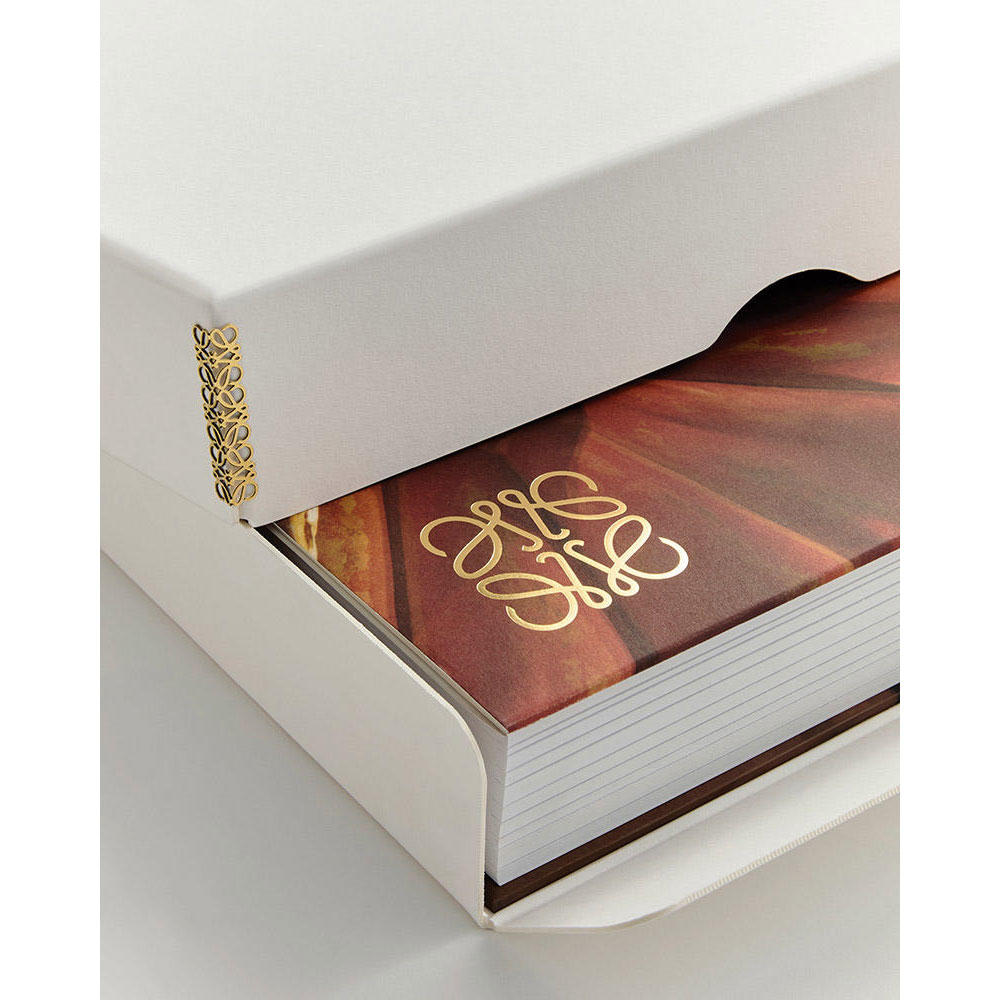 限定版として販売される『Crafted World: Jonathan Anderson’s LOEWE』はカスタムメイドのボックス入りで、角の部分には銅製のロエベアナグラムが重なりあうようにあしらわれています。