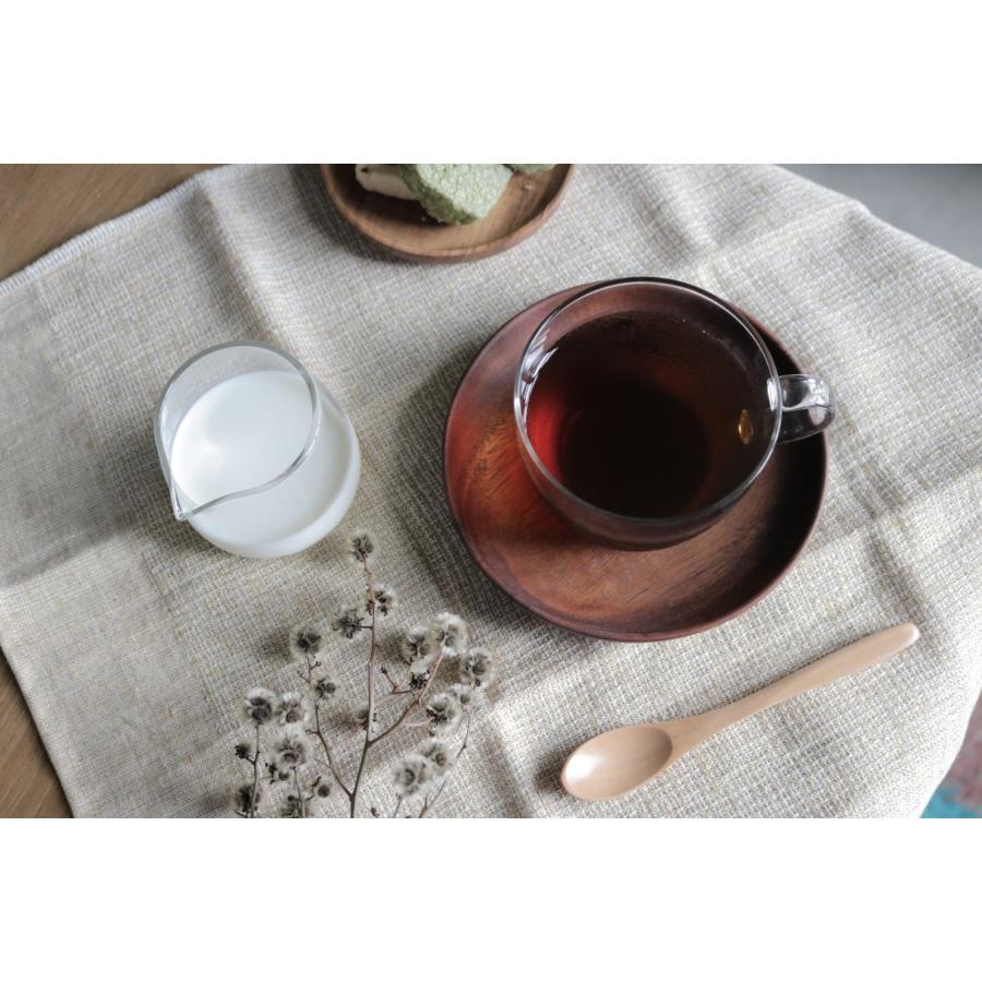 ぽってりした耐熱ガラスのミルククリーマー。ミルクはもちろん、シロップやドレッシングを入れにも。注ぎ口はキレが良く、さらりとした牛乳やとろみのあるソースを注いでも液だれしない仕上がりです。