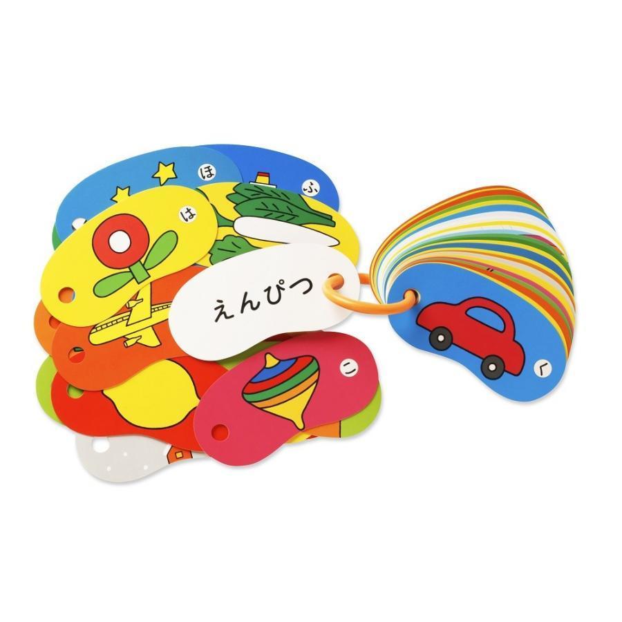 あいうえお版はカードの表にイラスト、裏にはそのものの名前が記されています。遊びながら50音や言葉に親しむことができます。