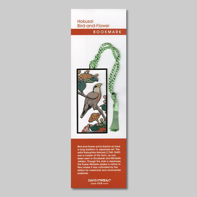 葛飾北斎(1760-1849))の花鳥図(鳥と花を描いた絵)。鳥がふわりと枝にとまった春のひと時が凝縮された図柄です。