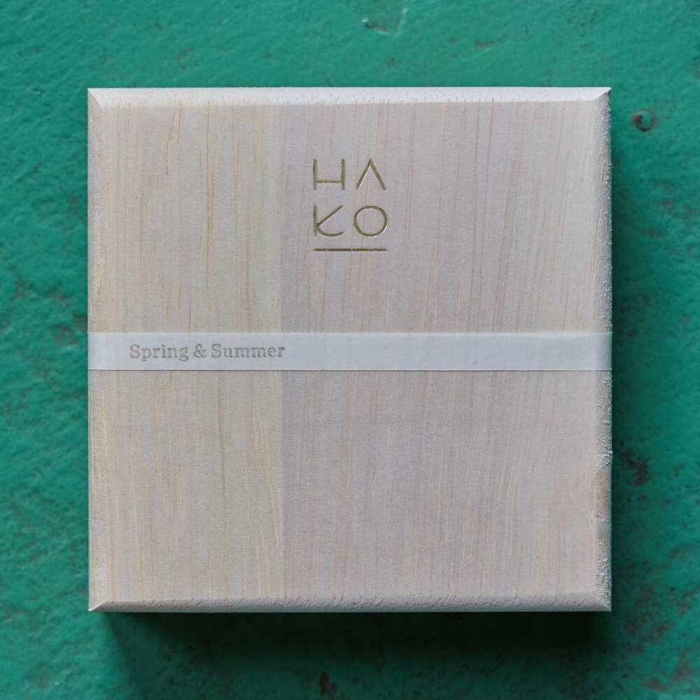 春夏の特別な香りの「HA KO」全4種と、白檀、アガーウッド、苔、シトラスの香りを詰め合わせた、計8枚入りの箱タイプです。