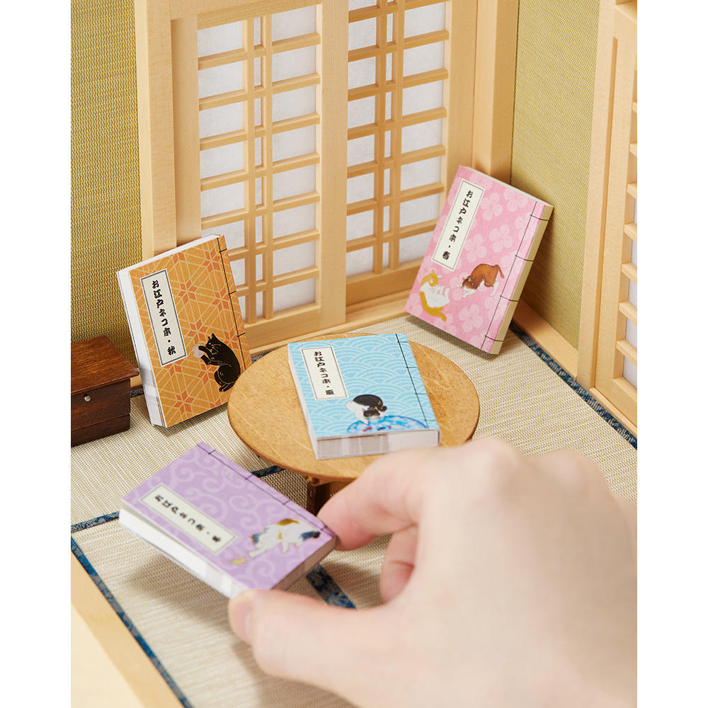 「豆本型ふせん お江戸ネコ本」が1冊付き。春夏秋冬4種類の中からランダムで1冊が同封されています。