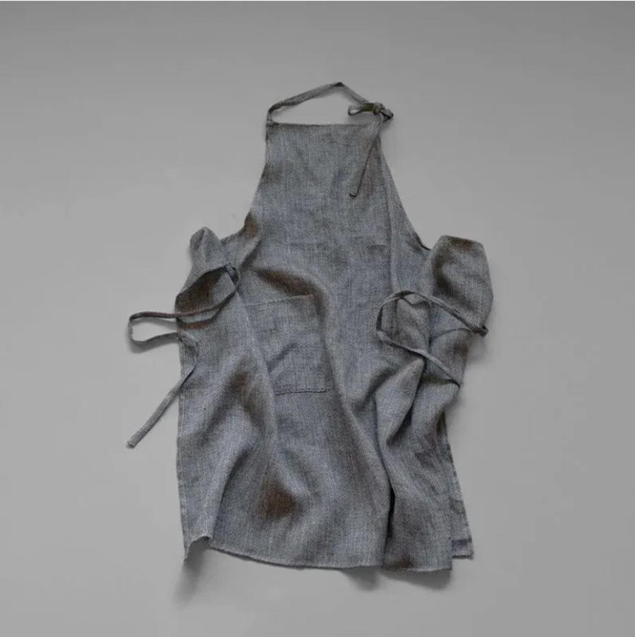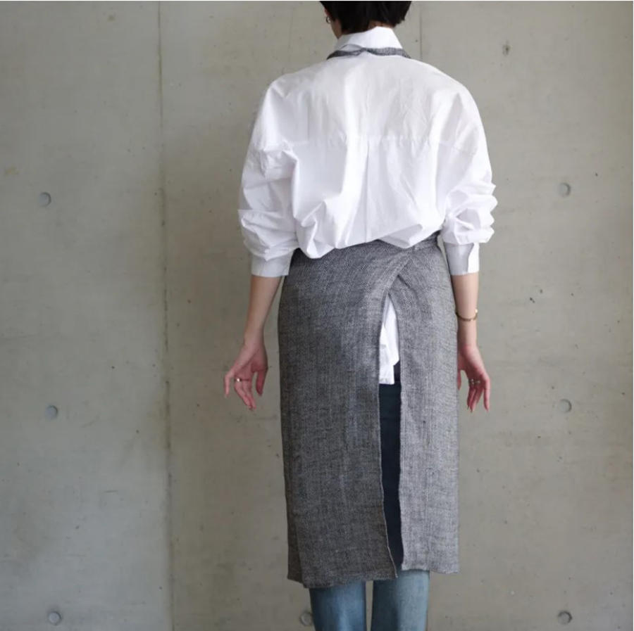 上質なリネン生地をたっぷりと贅沢に使っているリネンアンドデコールのエプロン。着丈も長めで、男女兼用で幅広い年齢の方にお使いいただけます。