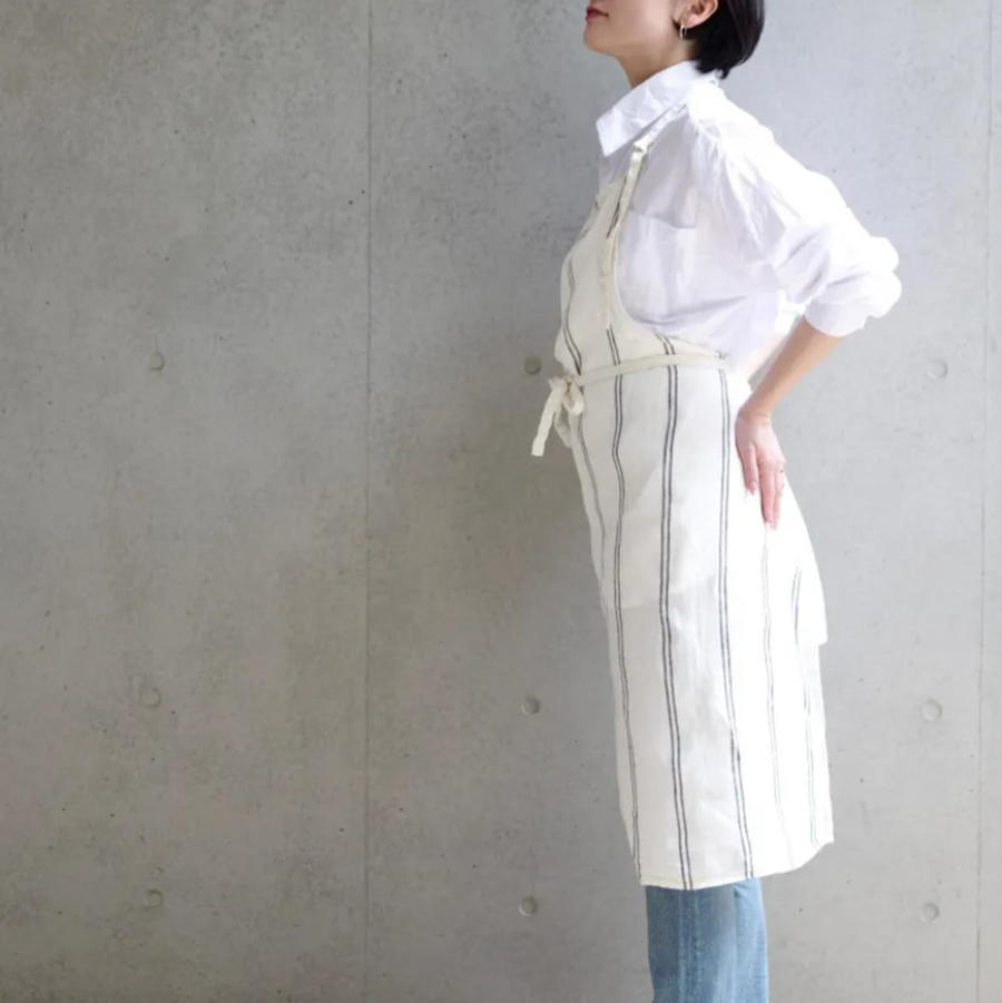 洗濯を重ねるごとに生地は柔らかくなり風合いが増していくリネンのエプロン。使い込むほどに愛着がわいてくるはず。