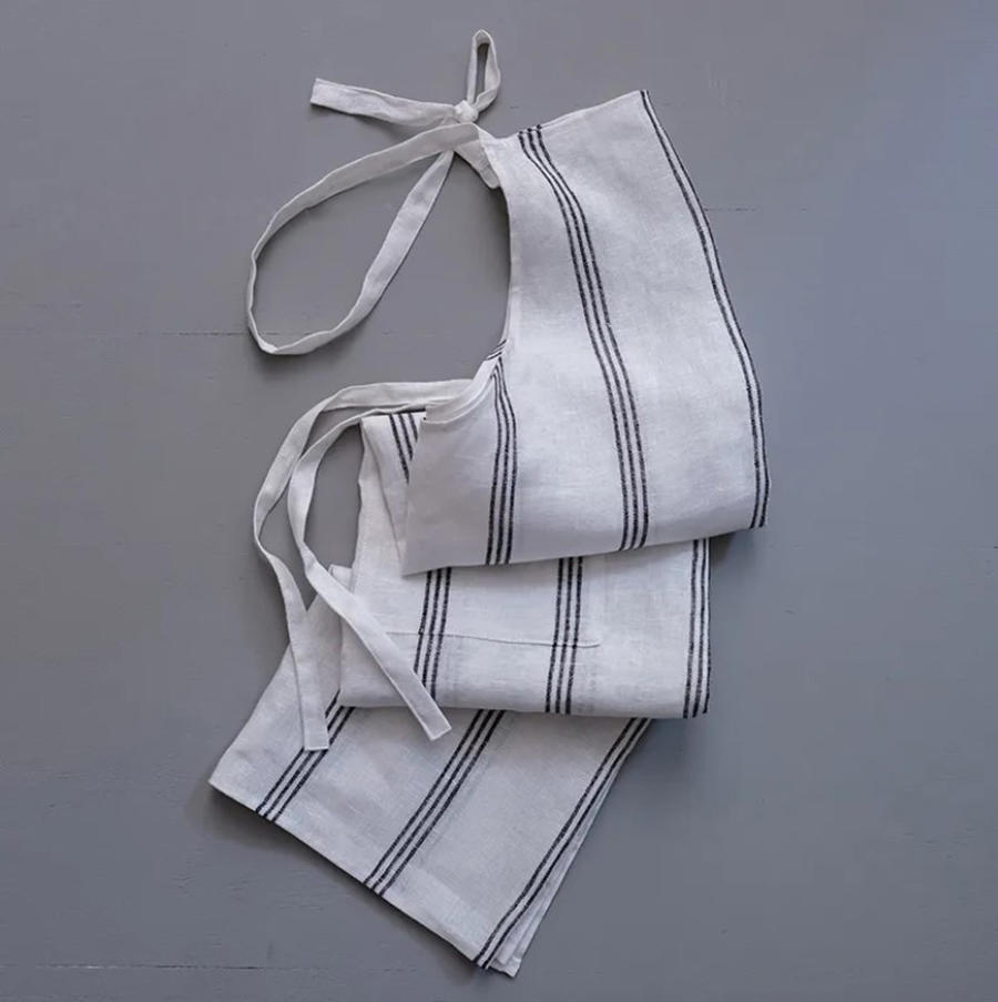 LINEN & DECOR リネンアンドデコール エプロン ストライプ(ホワイト×ブラック)