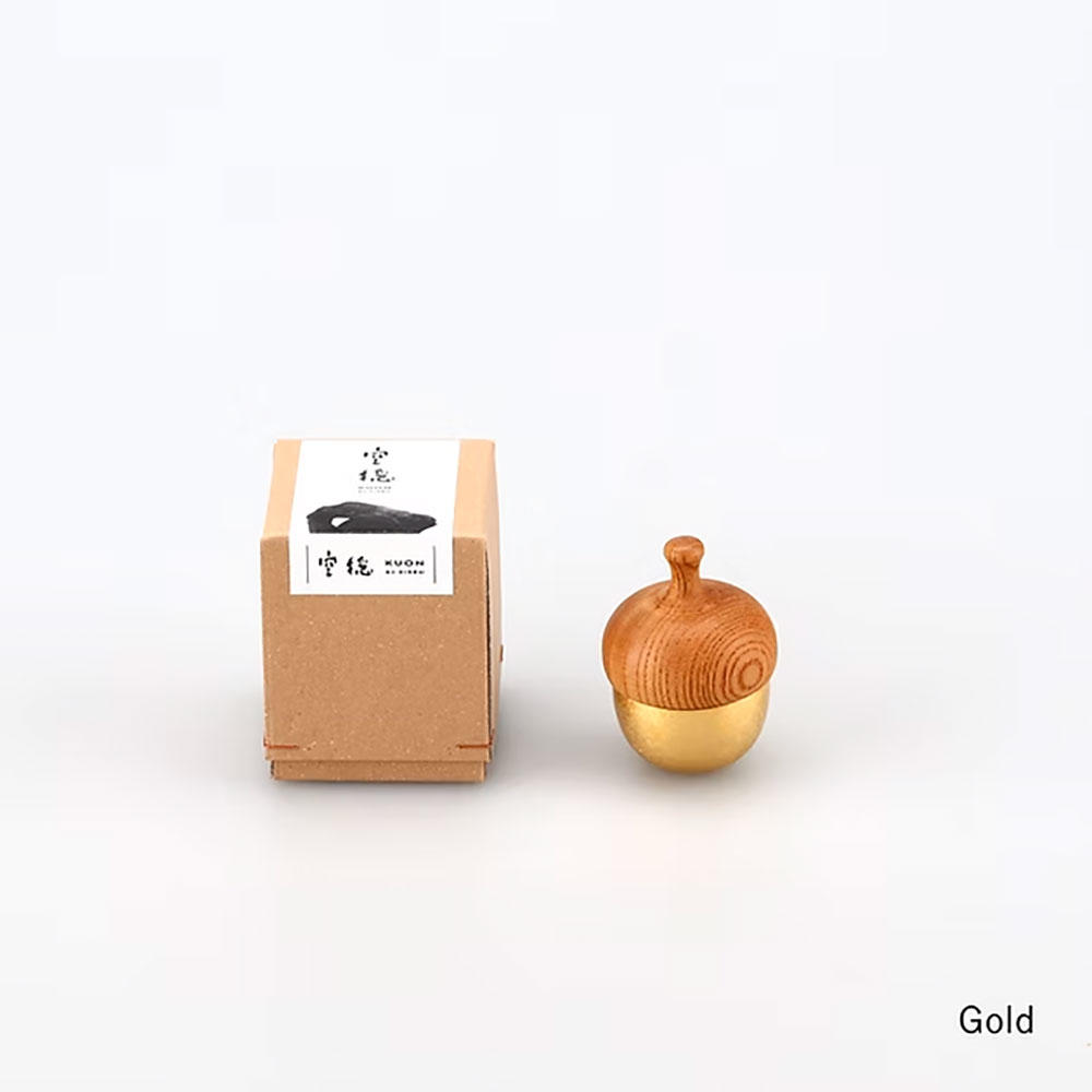 どんぐりの中にしまわれた振り子でおりんを鳴らします。(特許取得済み)