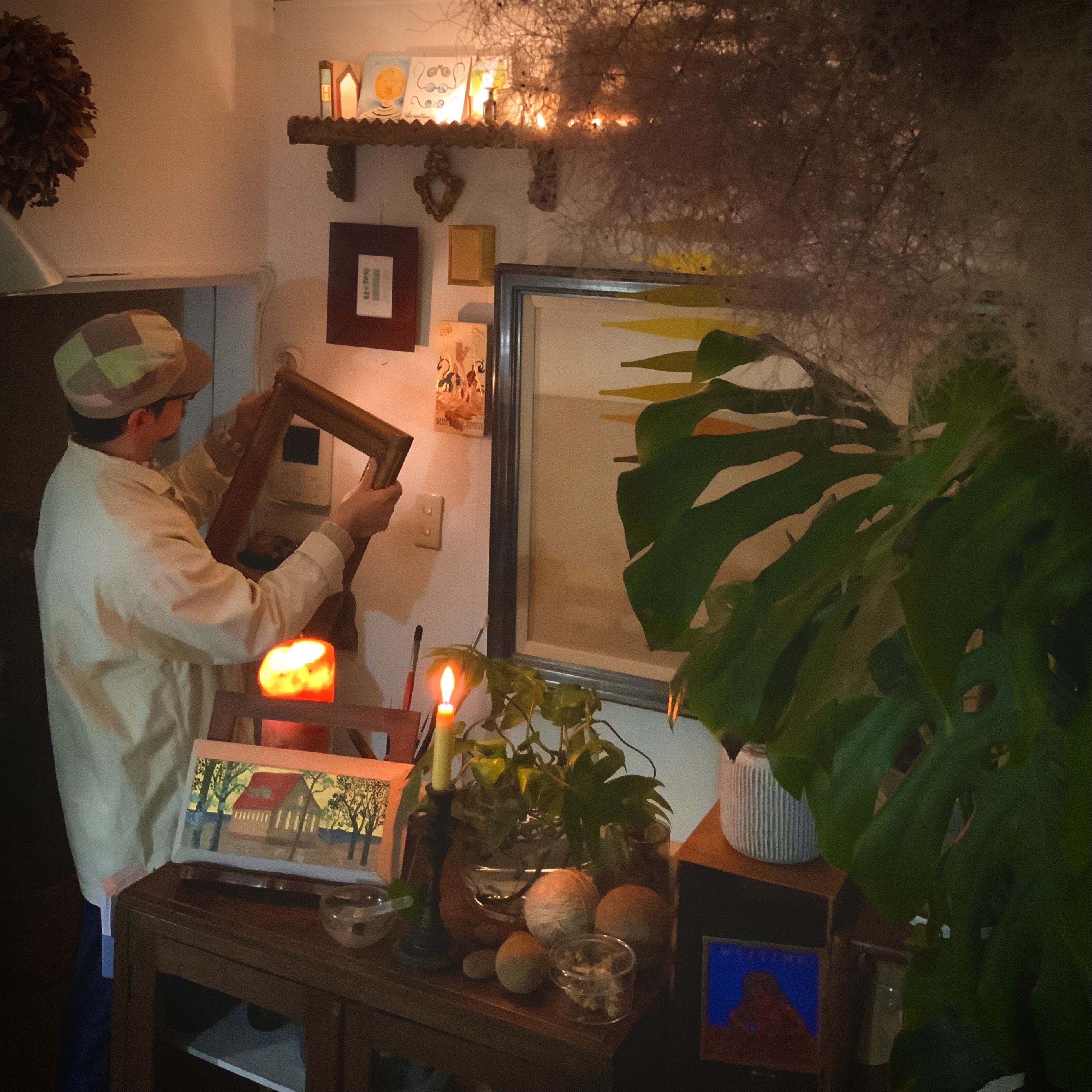 2020 大阪の乙女屋にて個展「路地裏のアトリエ」展。出張アトリエとして内装も設える(23’)