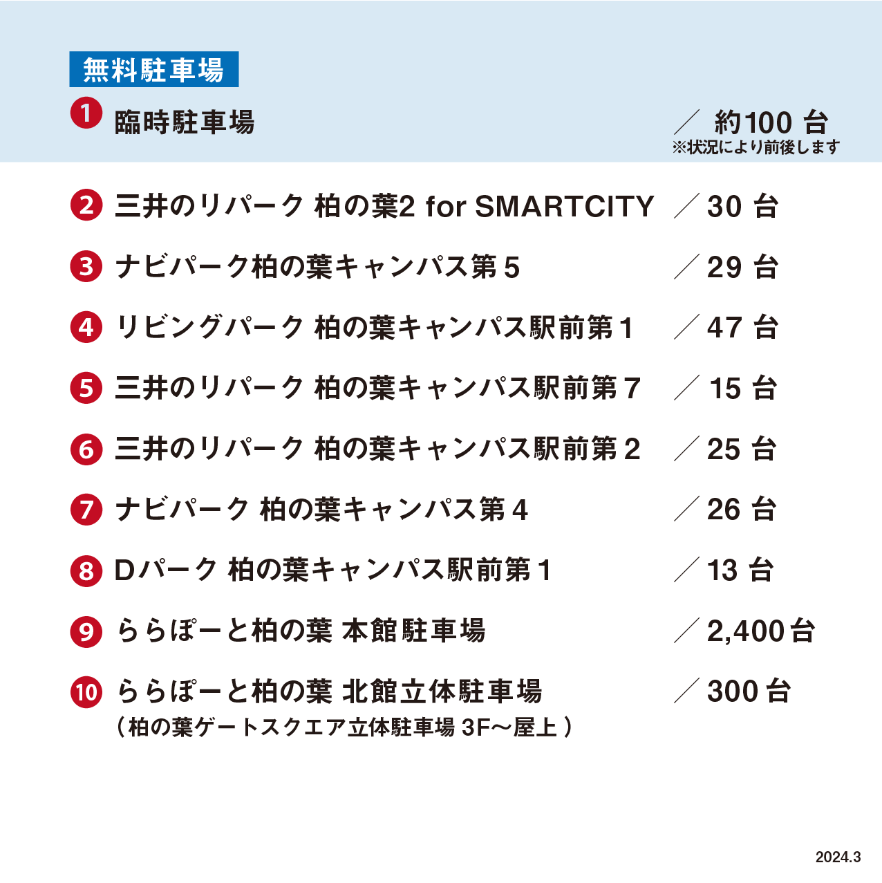 ① ららぽーと柏の葉 本館駐車場 (2,400台)