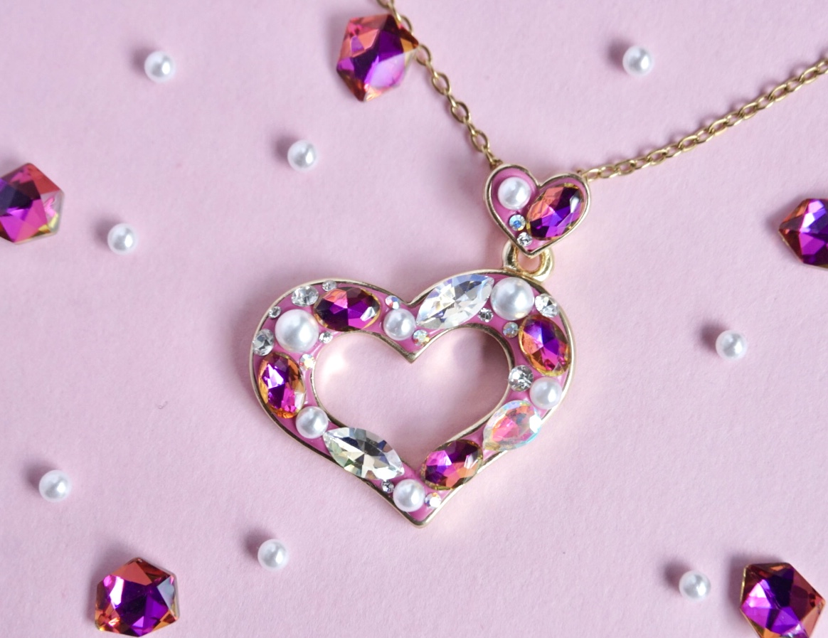 コハートの鍵チャームとオープンハートは、ネックレスかキーホルダーのどちらか選んで仕上げます。