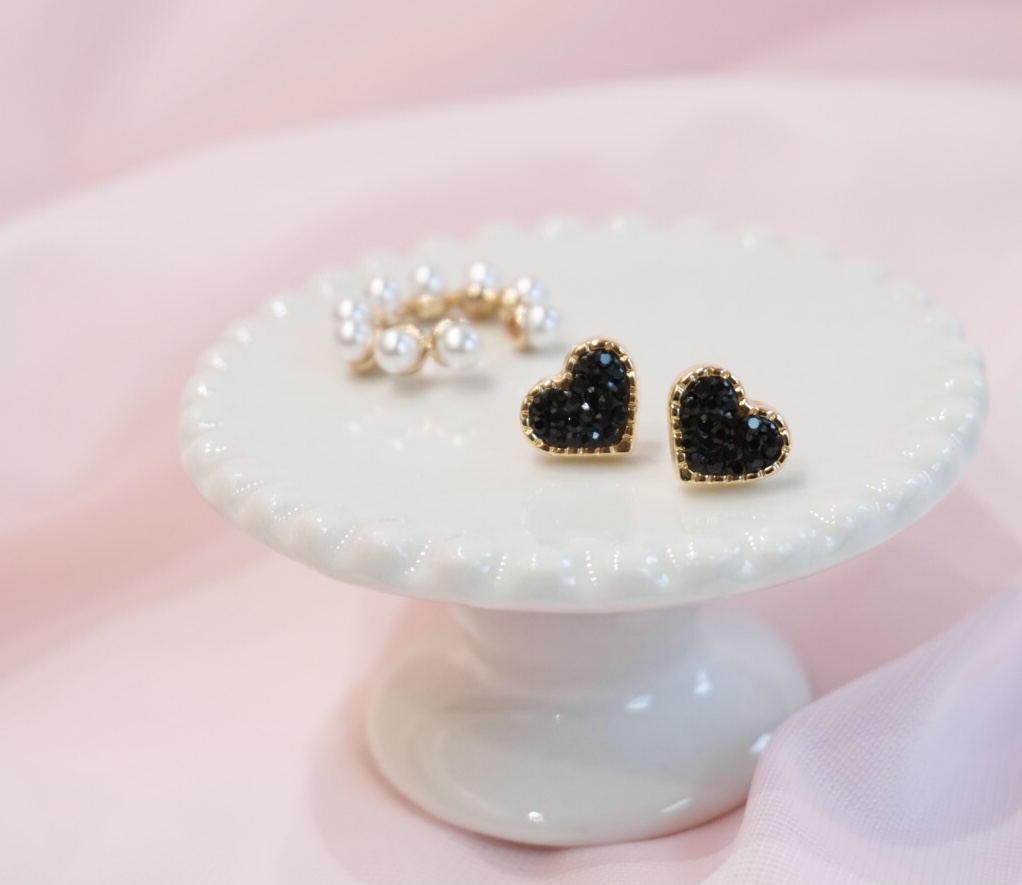 ハートピアスはゴールドのみ。イヤリングへの変更はできません。ピアスのみアレルギー対策の鉛フリー素材、18金メッキ仕上げです。プレシオサという高品質クリスタルガラスを使用して仕上げます。ストーンは黒やオーロラ、クリスタルカラーなど数種から選べます。(すべての人にアレルギーが出ないことを保証するものではありません。気になる方は他のアイテムをお選びください)ピアスを作った方にはイヤーカフのおまけ付き。