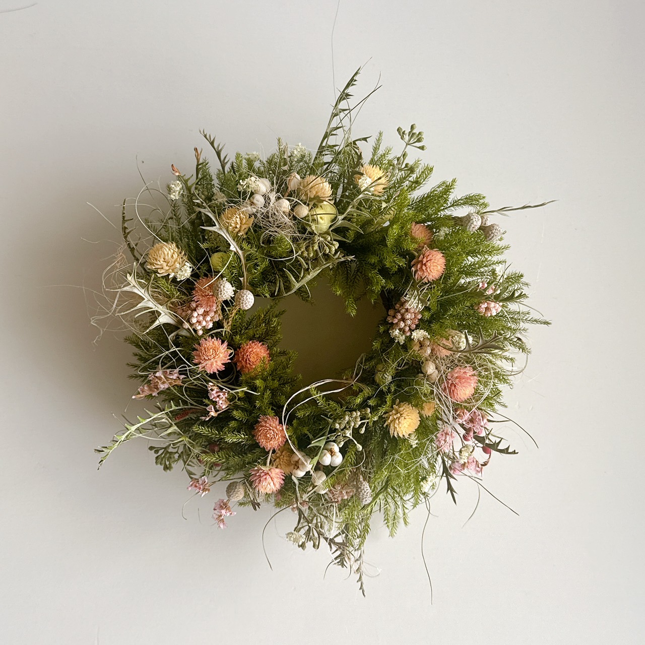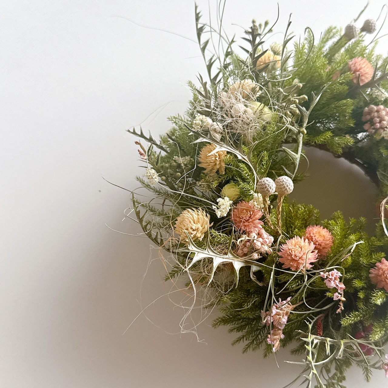 ・開催日2日前以降のキャンセルは花材準備の都合上、参加費を全額ご負担いただき、後日講師作成のリースを着払いにて配送させていだきます事をご了承ください。