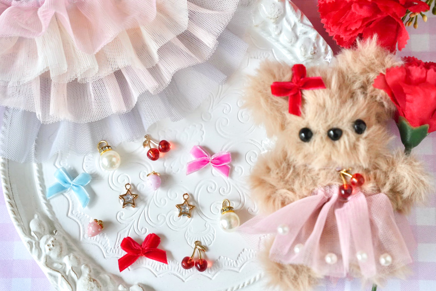※チャームやスカートは数種類の中から好きな色や形を選びます。