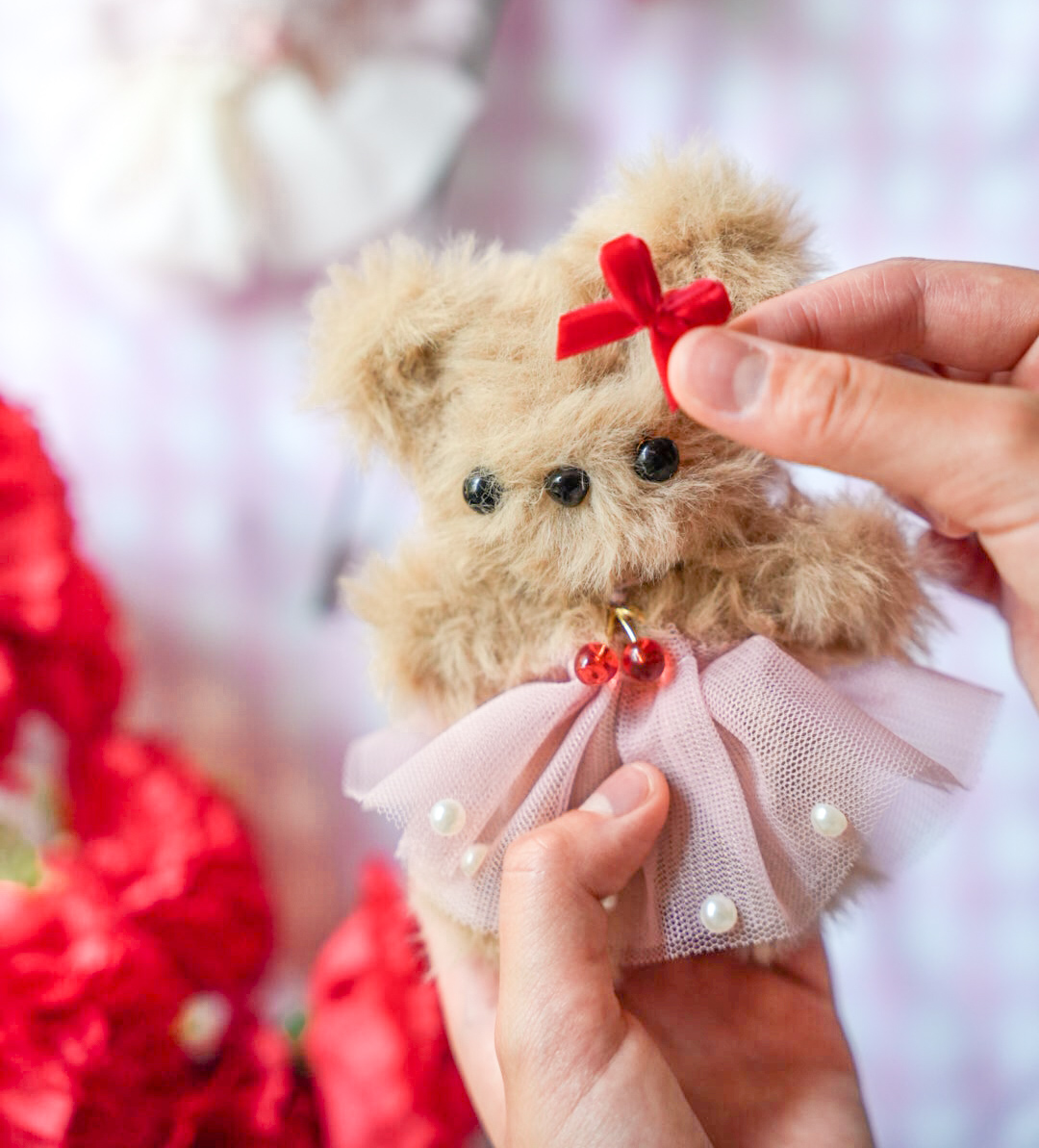 ふわふわなモールをねじって曲げて、かわいいくまちゃんを作りましょう!リボンやチャーム、スカートは好きな形や色を選べます!目の位置や耳の大きさなど、お子様によって作品の個性がでるので、世界にひとつの愛らしい表情のくまちゃんが出来ますよ。大人の方の付き添いがあって協力して作れば未就学の幼児のお子様でも作れます!所要時間は30分~1時間。(個人差あり)