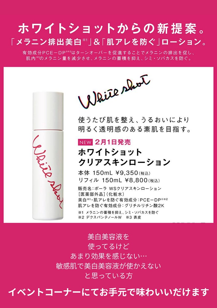 ☆2月1日 美白のホワイトショットからの新ローション発売