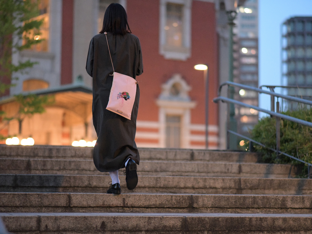 キャンバス地の全面に作品をプリントしたバッグは、まるで絵画を身につけているかのようです。