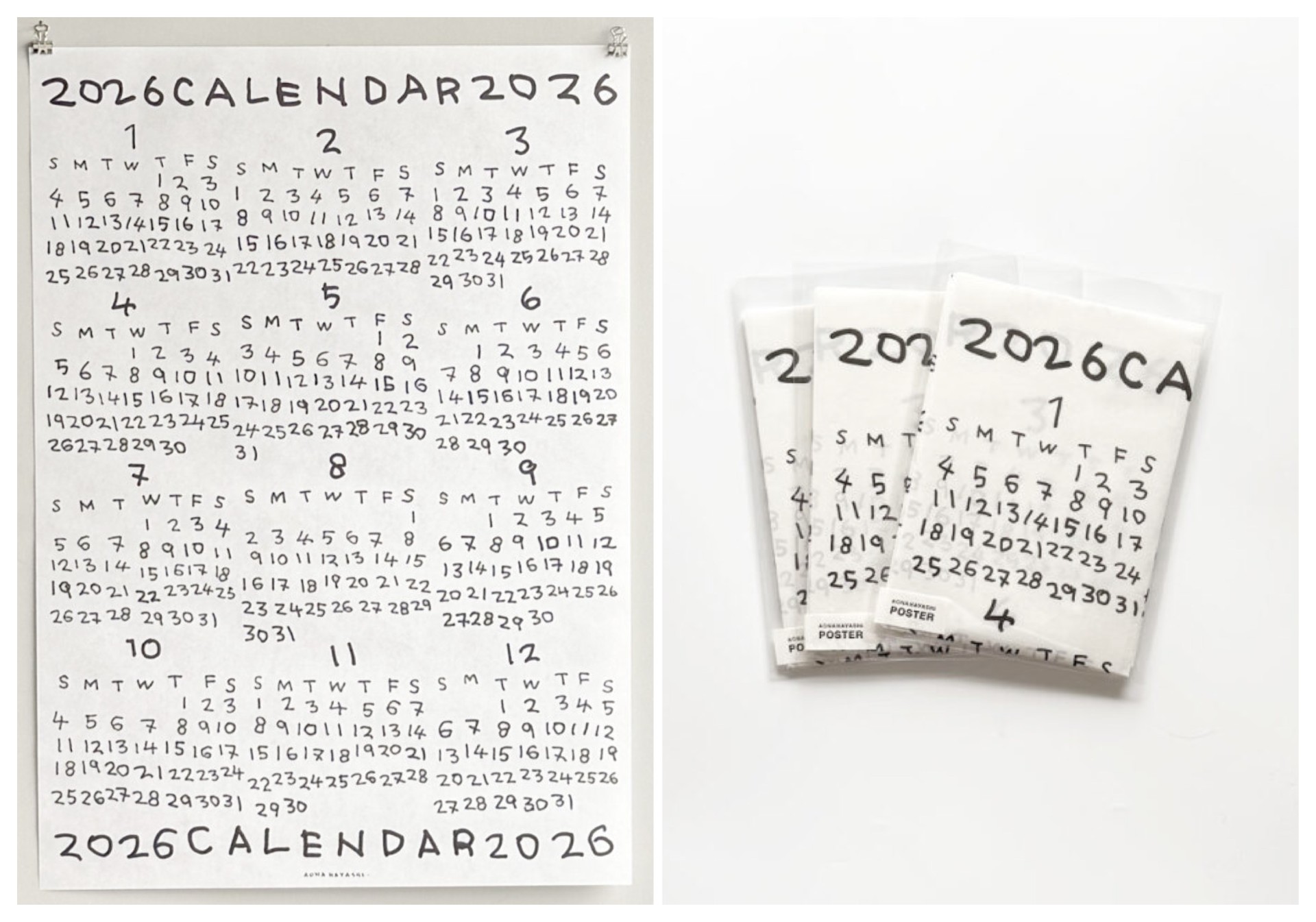 林青那によるポスター。2026年の暦が描かれているカレンダーのような一枚です。毎年、画材が変わることで、その表情が変化します。今年の画材はフェルトペン。