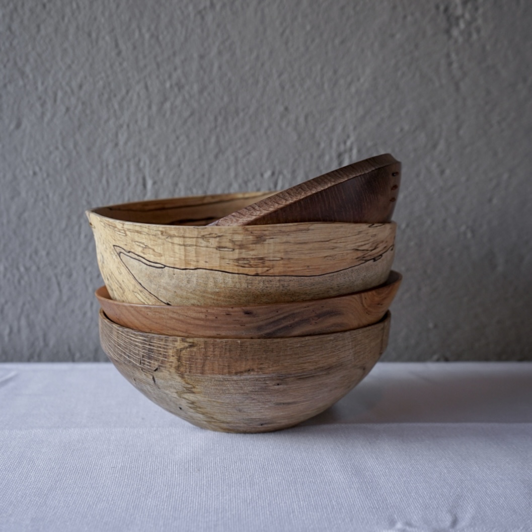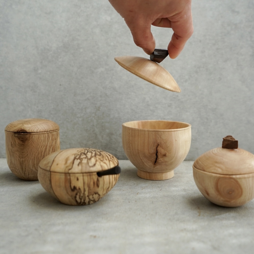 山の整備や剪定作業で得た木を未乾燥の生木の状態で加工したうつわやオブジェを主に制作しています。