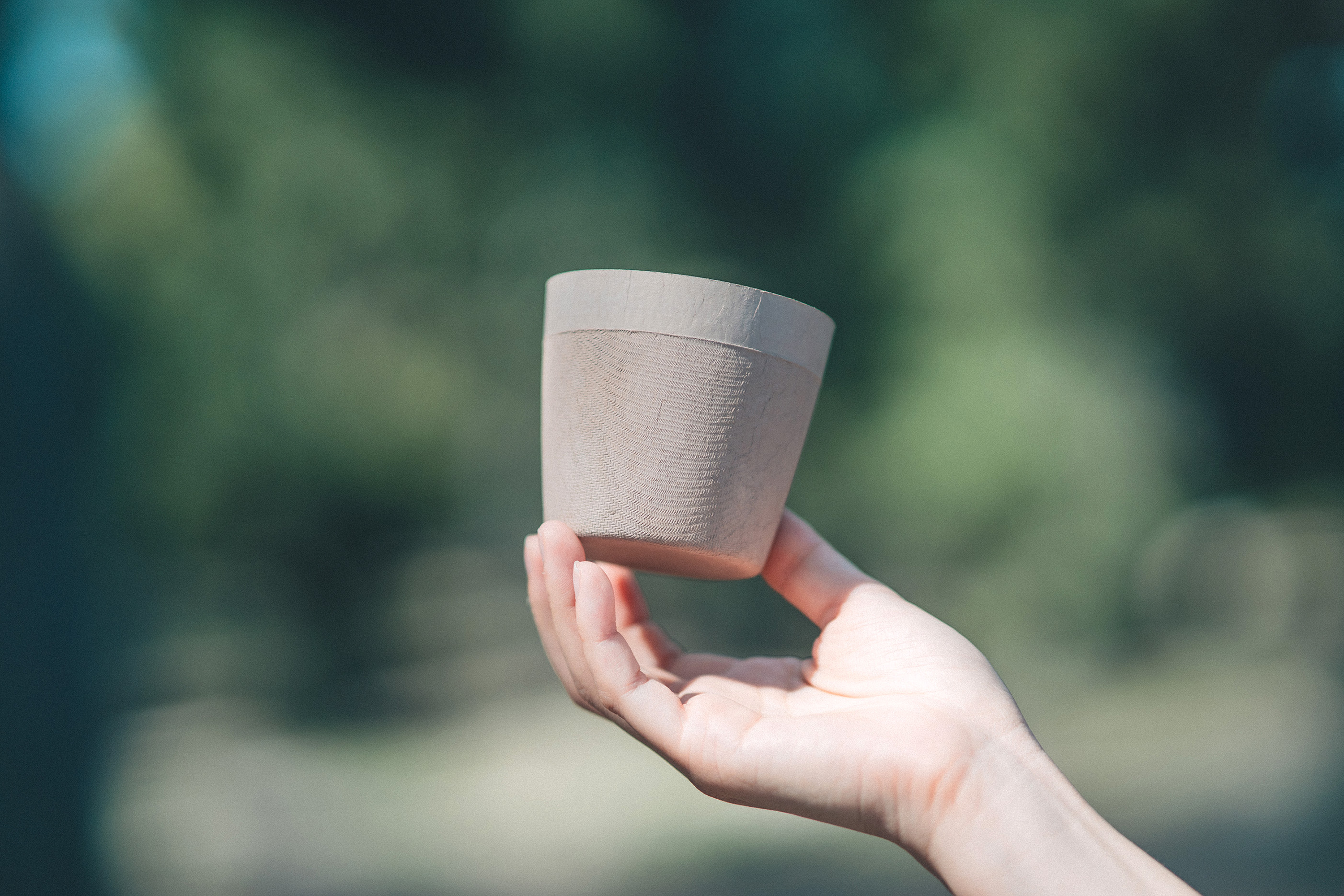 原料が天然素材にもかかわらず、水にも圧力にも強く、繰り返し洗えて使える機能性に満ちた紙コップです。
