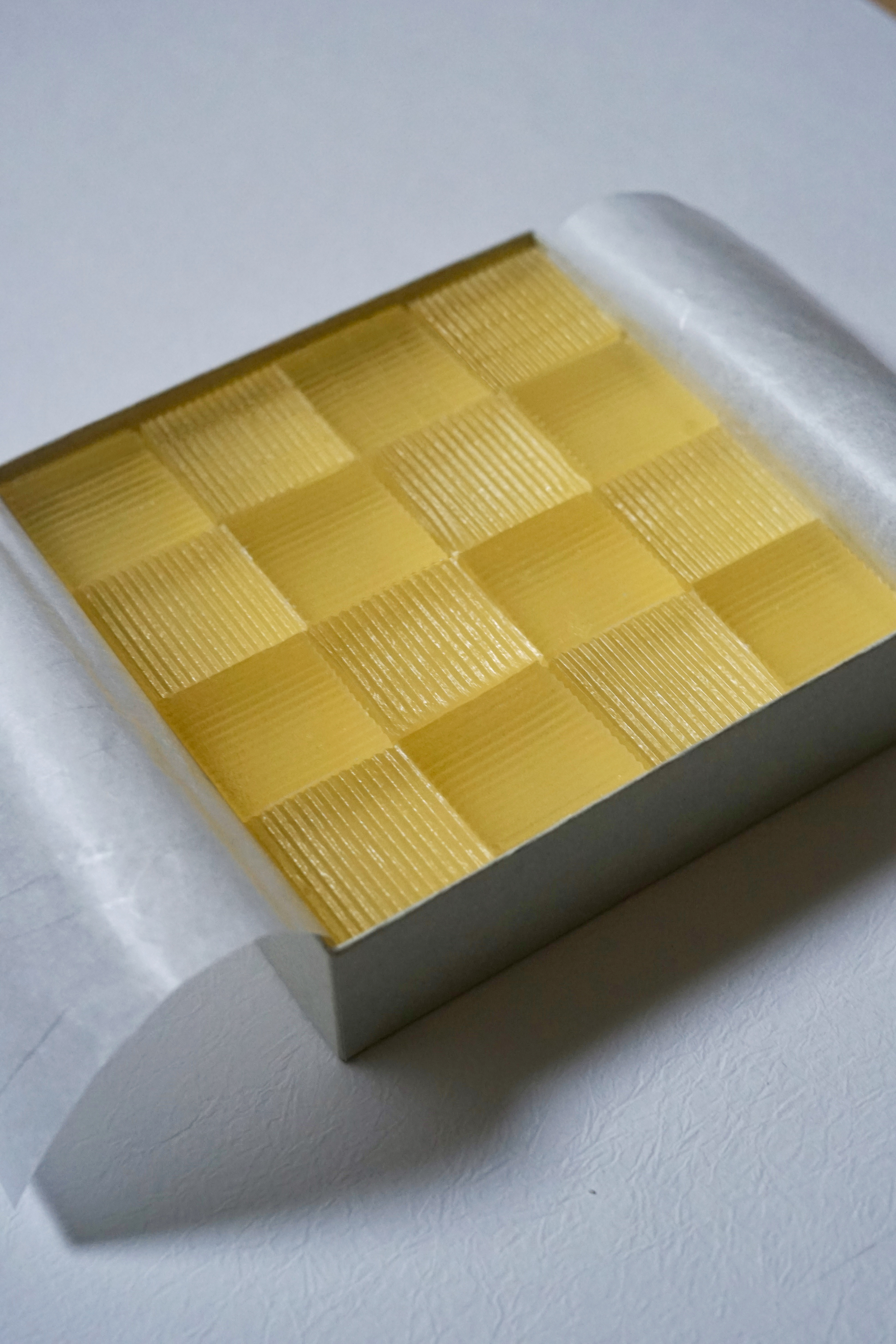 今回は、春を感じる琥珀糖、花の雲と四季の菓(梔子)が並びます。