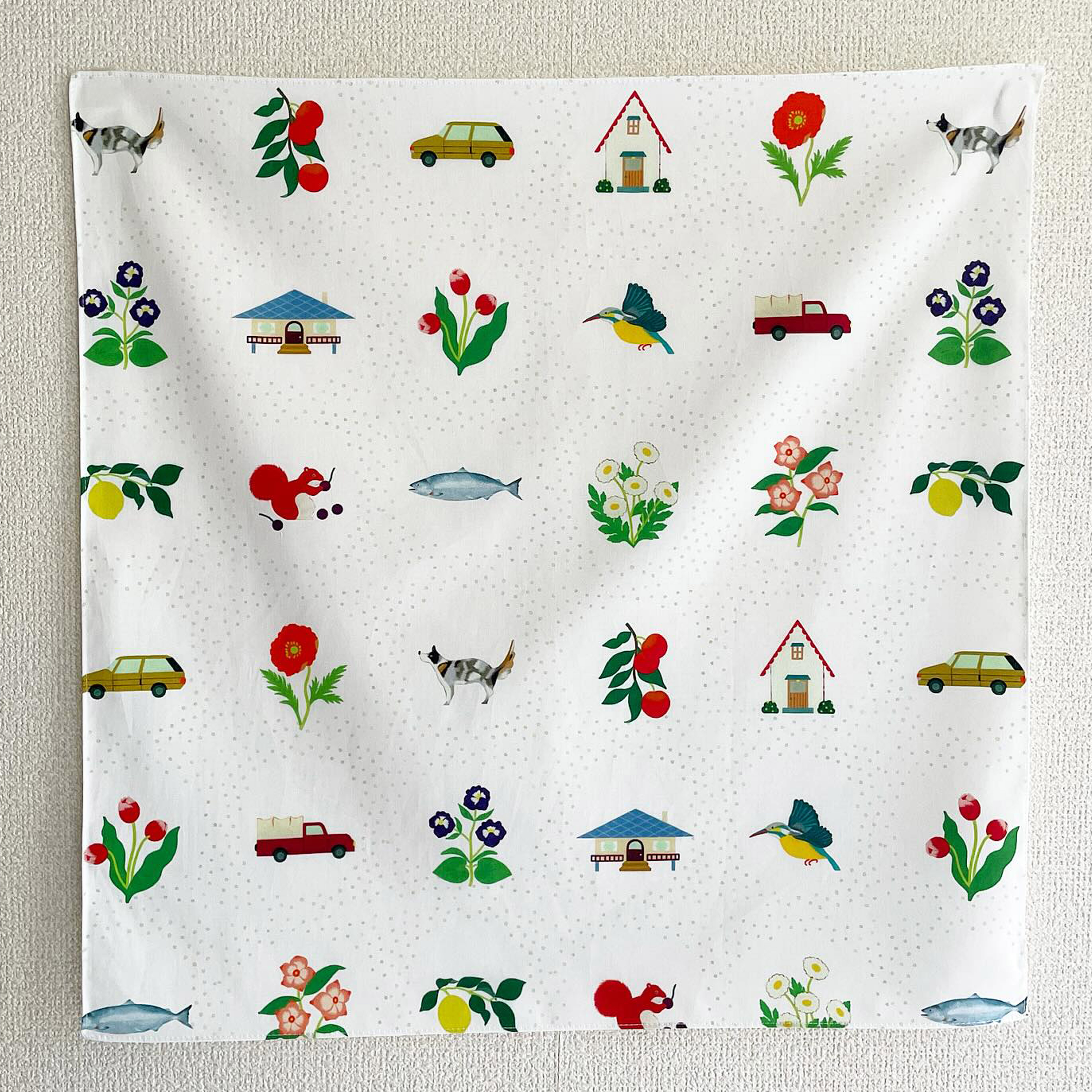 同時に、自作の絵をテキスタイルにして発表。